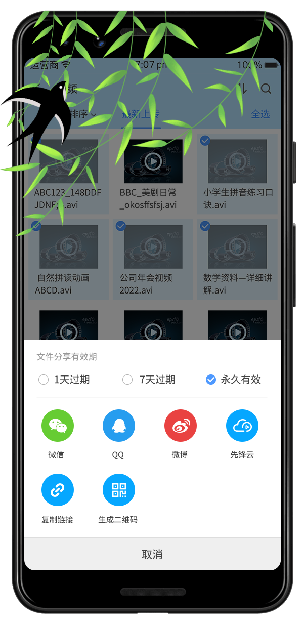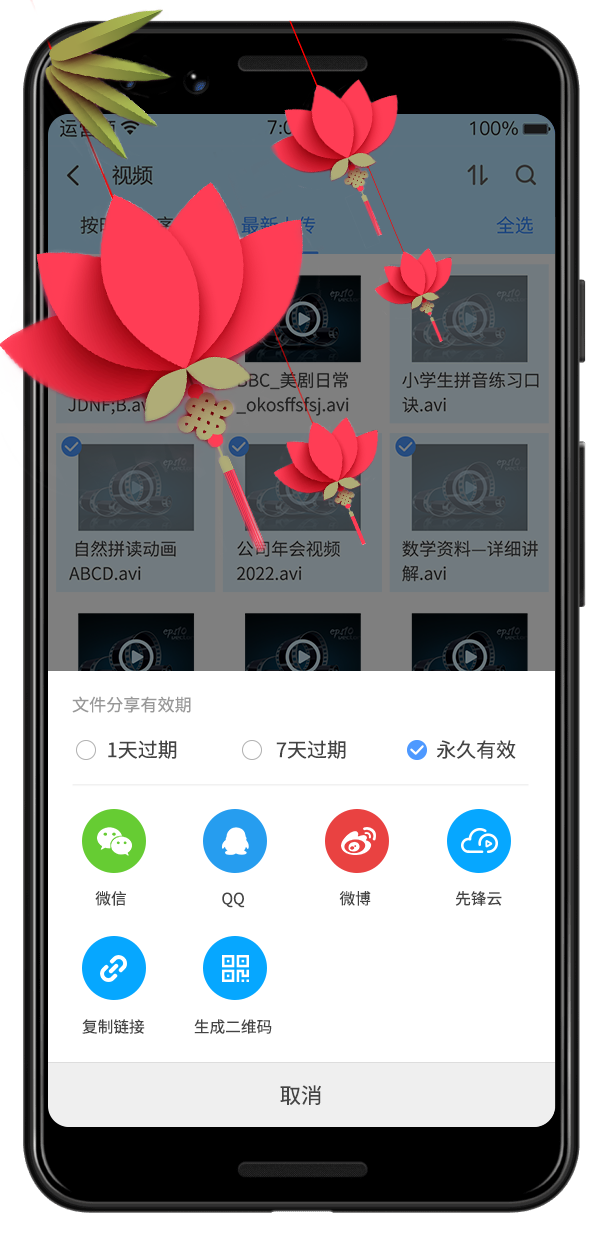 先锋云盘是零与壹软件继“影音先锋”后又一倾力为用户精心打造的私密云存储产品,您可将重要的内容,如视频、图片、音乐、文档一键备份到云端;采用加密技术保护隐私,文件传输和储存既安全又可靠;多端数据同步,资料能够随时随地携带,您可以即时查看和管理云盘内的私密点滴。